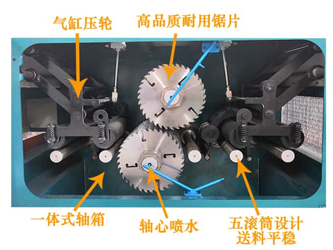 5.采用上下軸鋸設計,具有鋸片直徑小,鋸路小省料的優(yōu)點。上下鋸設計的鋸片鋸路是正常單軸鋸片鋸路的50%。加工同樣高度的木料其鋸路僅為普通單據(jù)軸的1/2。鋸切面光滑平整可以代替刨。節(jié)能降耗一次多片加工。送料速度高,大大提高加工效率,上料快,操作簡單,維護保養(yǎng)簡單,上下輥主彈簧壓力,送料平穩(wěn),增加鋸片的使用壽命。
