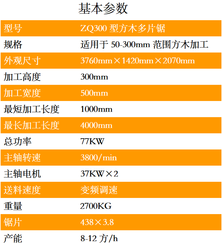 1.ZQ300型方木多片鋸采用獨立5條滾軸傳動設計,可以保證同一個平面線上,送料平穩(wěn)。