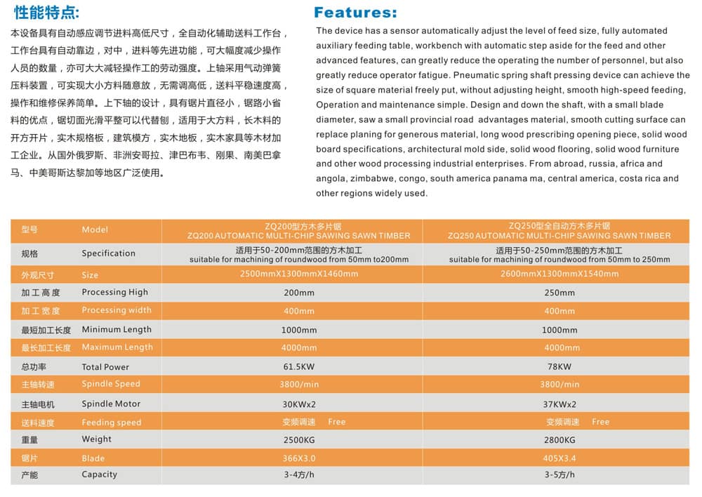 在方料多片鋸加工過程中,送入不同的長度的長短料,不同材質的木料,都可以加工成不同厚度、不同規格、不同長短的方片,滿足用戶的多種需求。方料多片鋸主要的發展方向是人造板產品,畢竟它的加工厚度、長度都是可以控制的,因此在人造板市場有著良好的前景。